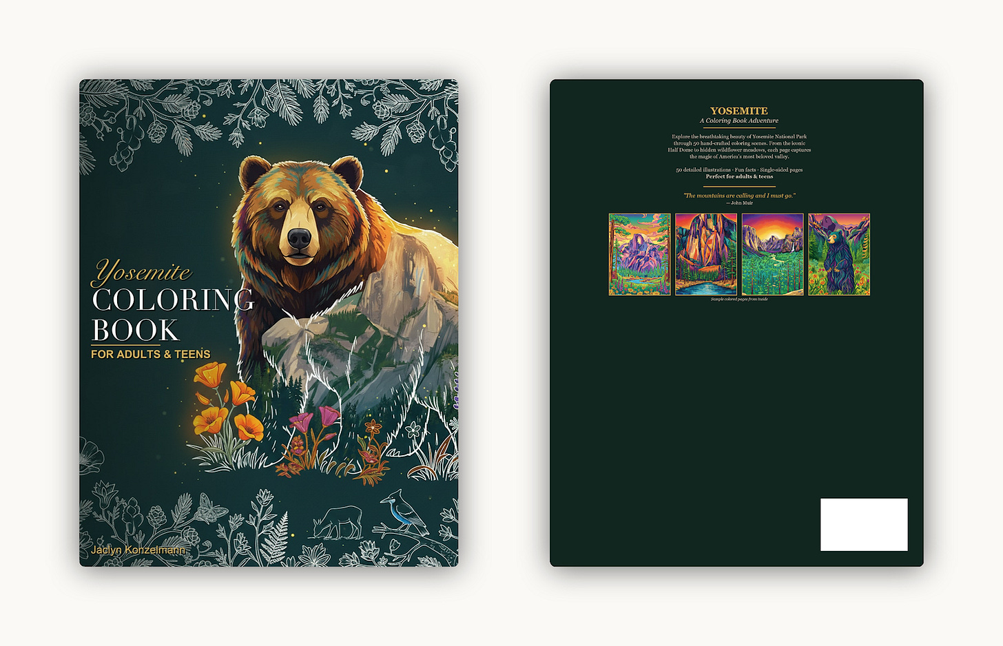 Using Lulubot as my Creative Director, we concepted 50 pages of Yosemite illustrations. I didn’t draw them; I directed them. I offered feedback on the covers, but my agent did the heavy lifting of generating interesting facts for the pages, and formatting it for Amazon Kindle Direct Publishing (KDP).