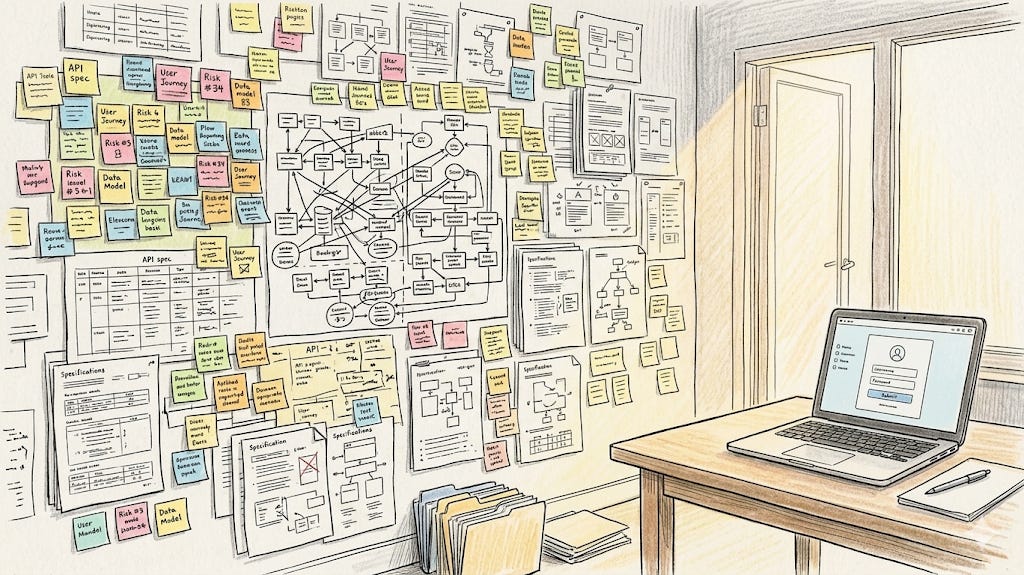 Engineering time was expensive. Writing code was slow. If your team spent three weeks building something that turned out to be wrong - a state you hadn’t accounted for, a conflict you hadn’t caught - you’d have lost three weeks. In a world where building is expensive, you protect that investment by front-loading all the thinking. You spec everything you can think of before anyone writes a line of code. The PRD is the safety net.