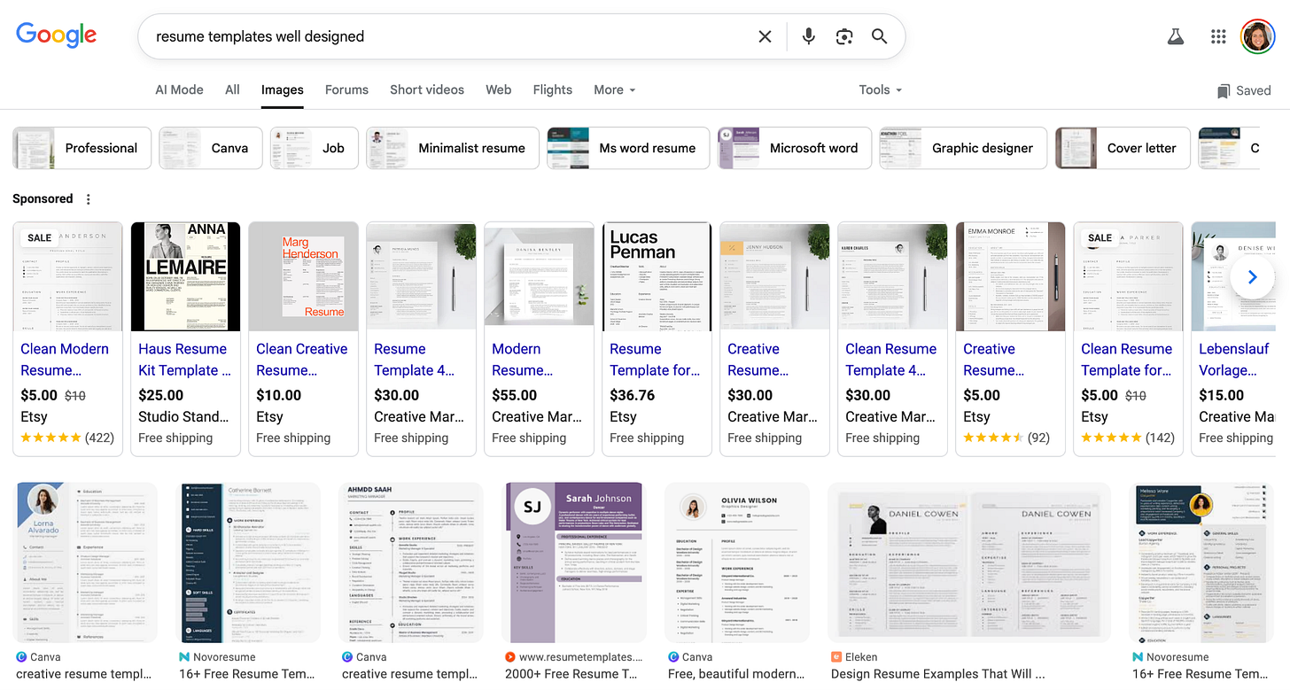 A visually well-designed resume shows craft and intentionality. There is no shortage of easy-to-use tools like Canva to help you create something that isn’t just a black-and-white page of dense text. I feel silly saying this - but you could even “just Google it” to get some inspiration:
